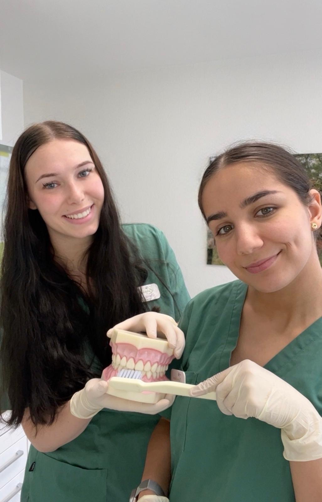 Besonders der Kontakt zu Menschen bereitet uns große Freude – wir möchten unseren Patientinnen und Patienten mit einem Lächeln begegnen und ihnen helfen, sich rundum wohl zu fühlen. Mit Begeisterung lernen wir jeden Tag Neues dazu und setzen unser Wissen praktisch um – ob bei der Patientenbetreuung, bei der Behandlungsassistenz oder bei der Aufklärung über die richtige Zahnpflege.